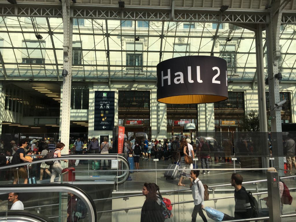 Uberでリヨン駅につき、入っていきます。ここからエスカレーターで上へ。
