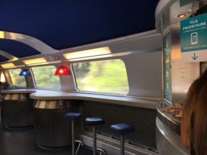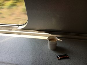 ユーロスターだとスタンダードプルミエクラスに乗るとワゴンで軽食運んできてもらえるのですが、フランス国内のTGVはそういうサービスはないです。まあ、5時間以上もずっと座っているのも逆にしんどいので気分転換になります。