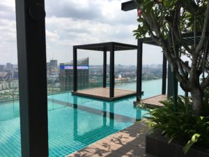 トゥンラザク取引所タワーを望む32階のインフィニティプール
