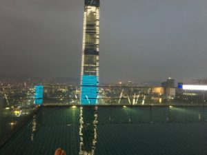 こちら側の光景で特徴的なのは、このトゥンラザク取引所タワーです。夜になると点灯が始まります。