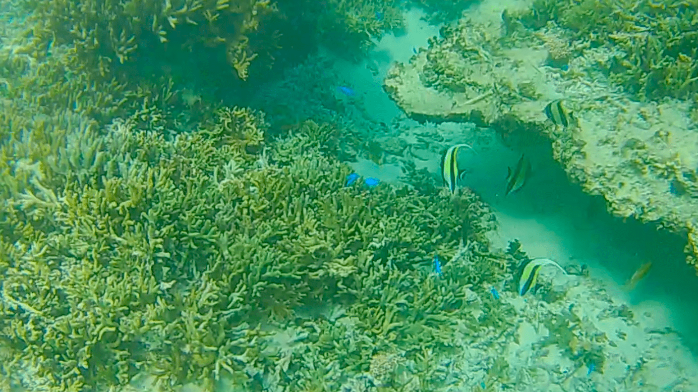 少しだけ、泳ぎながら水中のサンゴや魚たちとご対面