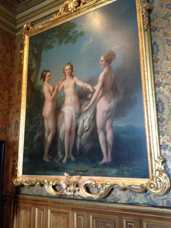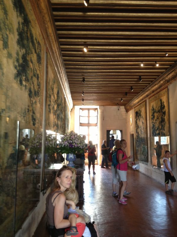 カトリーヌ・ド・メディチの2人の娘と3人の義理の娘を記念してこう名付けられたとか。義理の娘の一人はエリザベス1世によって処刑されたメアリー・スチュアート。壁にかかってるタペストリーは16世紀のフランダースのもの。