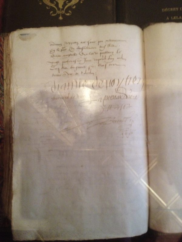 そのはずです。肖像画的に(笑)間違ってたらすみません…あと、ガラスケースの中に展示されたこの書物は確かディアーヌの直筆サイン?お城の所有権を渡せとカトリーヌが迫って。