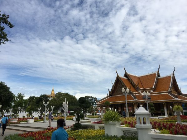 3日目である月曜は一人で過ごすつもりだったんですが、仕事でバンコクを離れる友人に代わり、その彼女が案内してくれました。親切すぎる。最初は普通にワット・ラチャナダラムを見ようということで連れてきてもらったのですが、そこでパレードに遭遇したのをきっかけに、予定を変更してセレモニーを体験しました。