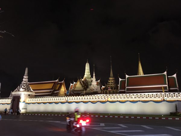 夜の王宮は神々しいまでに美しいです。本当にバンコク、一面は東京みたいに高層ビルが立ち並ぶ大都会ですが、こういう風景がバンバンあるので、そりゃ観光大国になるなあと心から納得。