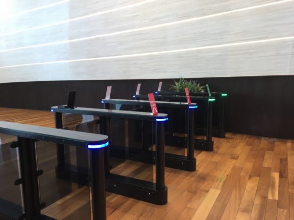 そしてエスカレーターを上がったあたりに入り口があるのですが、自動改札のようになっていて、搭乗券(スタアラゴールドが印字されてるので)をかざすと入れます。横はおそらく同伴者とかステイタスカードなどでの手続きのカウンターかなと。