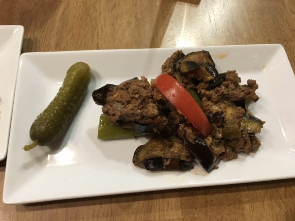そしてこちら!おそらく羊肉とナスの炒めみたいな感じですが、トルコらしい味付けで美味しい。