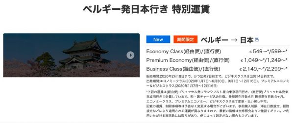 ベルギー(ブリュッセル)発は2/18までの購入、出発は1/16~12/15