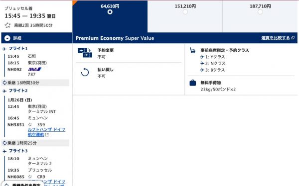 これは日程によりますが、この日程だと復路の羽田〜ミュンヘンがANA運航ではなくルフトハンザを選べるんですよね。