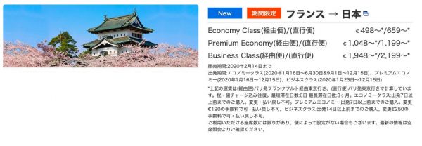 パリ発日本行きは2/14まで、ブリュッセル発は2/18までセール中!(出発はなんと12月まで!!)