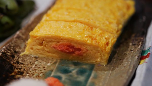 Tamagoyaki (Japanese omelet) with fish roe. You may add grated Daikon radish to it.
