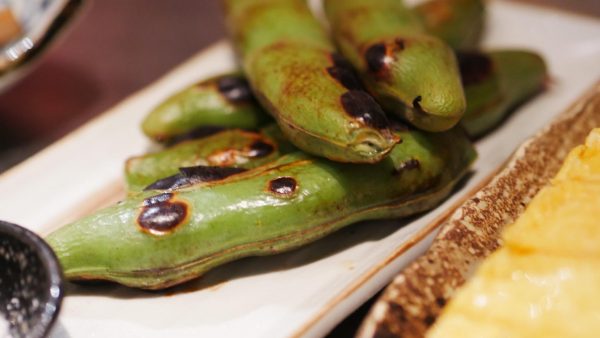 Baked broad beans. It looks like Edamame, but it’s a different kind of beans.